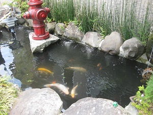 錦鯉がたくさん泳いでいます。
